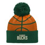 - Keep your little one warm in an adorble way by grabbing this Milwaukee Bucks Basketball Head Cuffed Knit Hat with Pom. It features a fun basketball design and a playful pom that matches the embroidered team logo. Made from soft, stretchy acrylic, this cozy hat is perfect for cold game days.