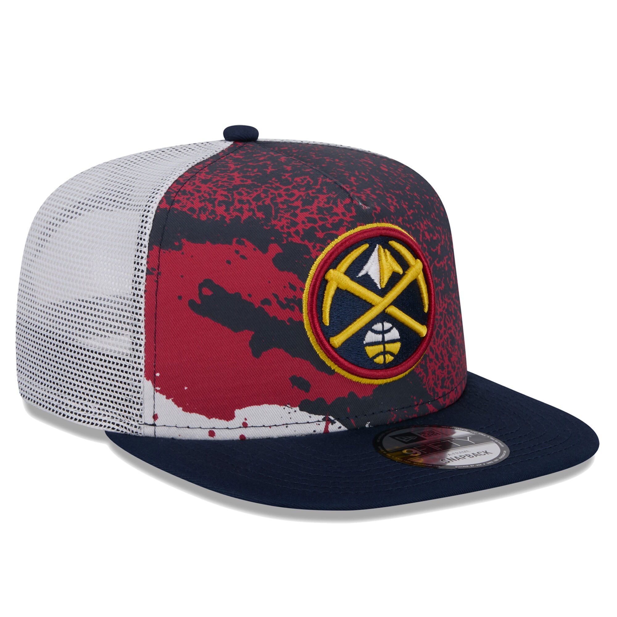 Boldy display your favorite NBA team’s colors with this Court Sport Speckle 9FIFTY hat. Its head-turning design by New Era features the Denver Nuggets logo in raised embroidery on an abstract pattern and the breezy feel of mesh panels. This Denver Nuggets snapback is fast and simple to adjust for the ideal fit.
