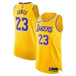 Elevate your Los Angeles Lakers gear with this LeBron James Authentic Jersey by Nike. This lightweight and breathable jersey features a smooth feel and twill applique graphics that showcase the iconic Los Angeles Lakers branding. With Dri-FIT® ADV technology, this jersey combines moisture-wicking fabric with advanced engineering to help you stay dry and comfortable, whether you’re courtside or watching from home