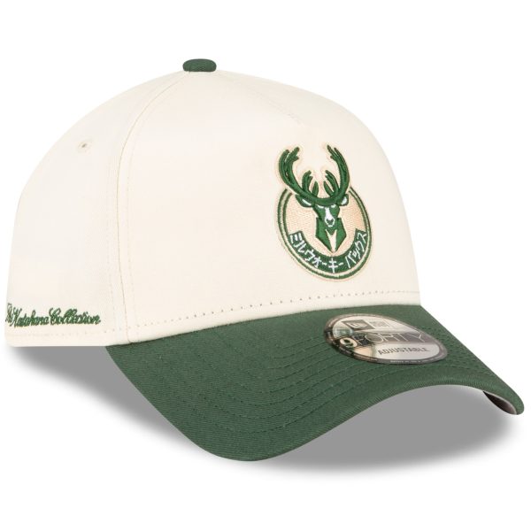 Men’s Milwaukee Bucks New Era x Hyperfly Katakana Collection White/Hunter Green A-Frame 9FORTY Adjustable Hat