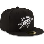 Show off your fandom when you put on this Oklahoma City Thunder black and white logo 59FIFTY fitted hat from New Era.
