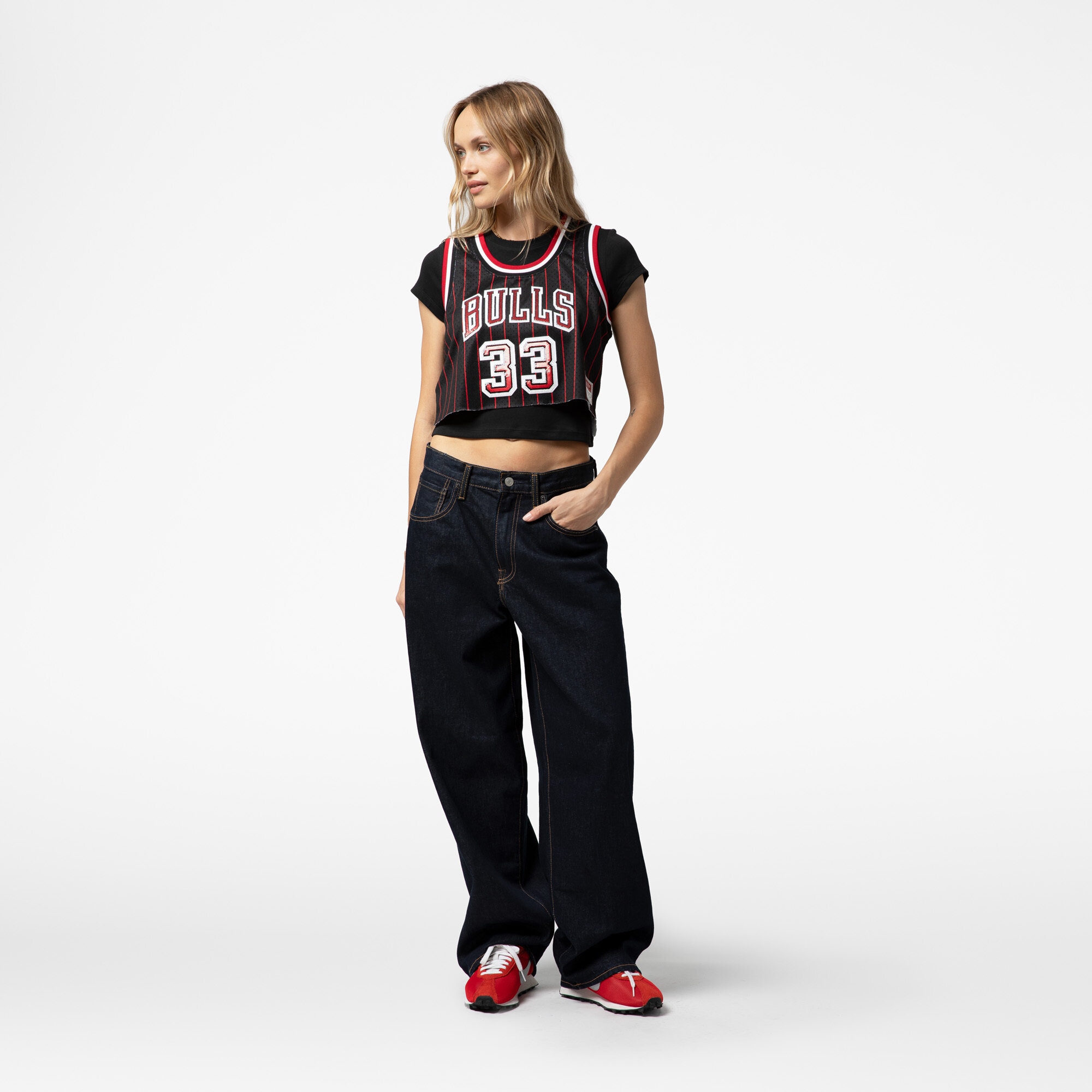 Home / Shop / Chicago Bulls / Women’s Chicago Bulls Scottie Pippen Mitchell & Ness x DANNIJO Black Fashion Cropped Basketball Jersey