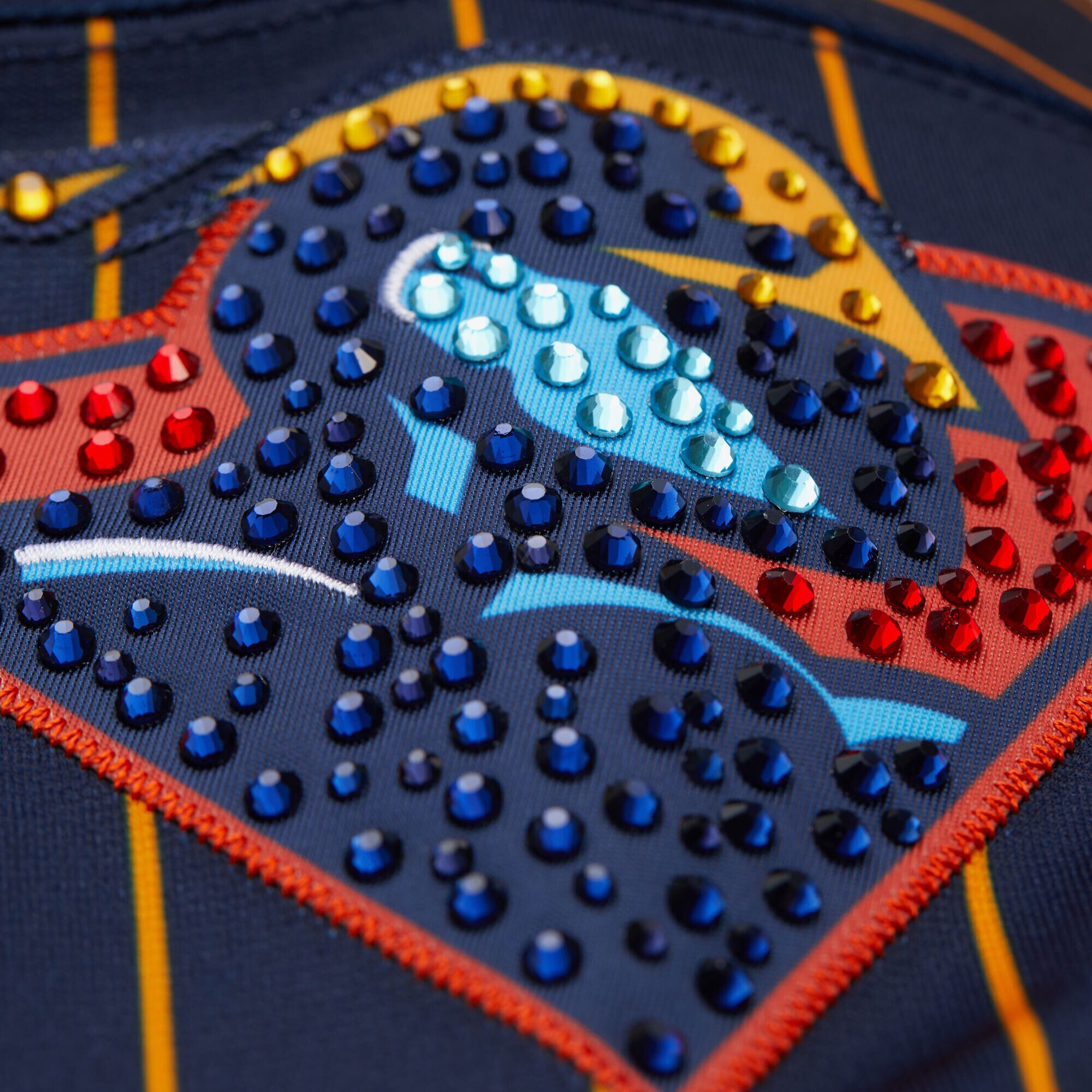- Twill appliques with bedazzled and sequin details