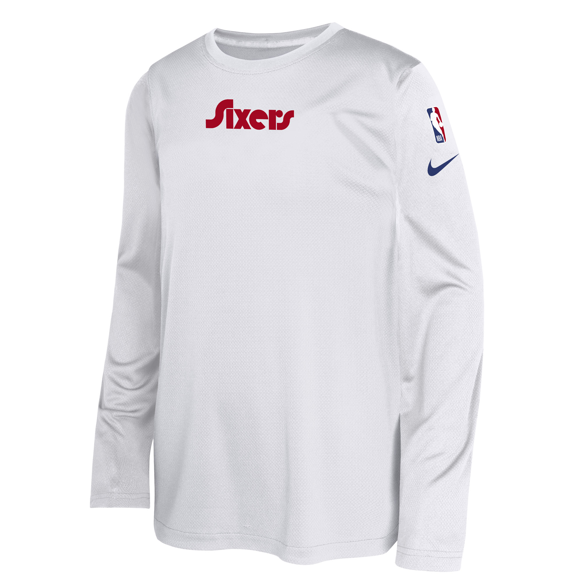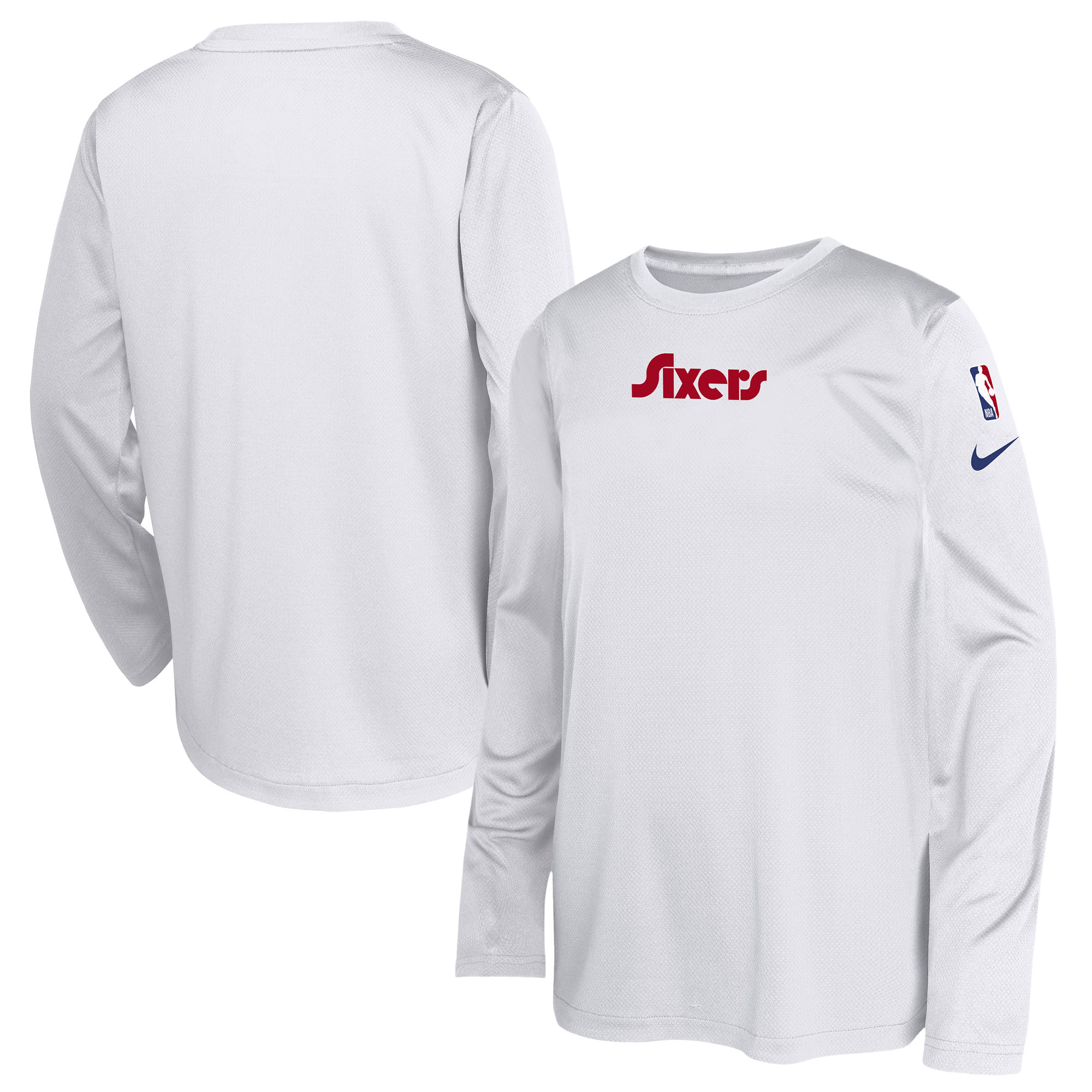 Help your kiddo feel like part of the team with this Philadelphia 76ers 2024/25 City Edition Pregame Performance Long Sleeve Shooting T-Shirt from Nike. This tee is modeled after the shirt the players wear while they warm up on the court and features city-inspired details that highlight what makes the franchise a unique member of the NBA family. While the loose fit and hem divots provide extra range of motion, Dri-FIT technology wicks away moisture to keep your young fan comfortable whether they're practicing their free throws or watching the Philadelphia 76ers game.